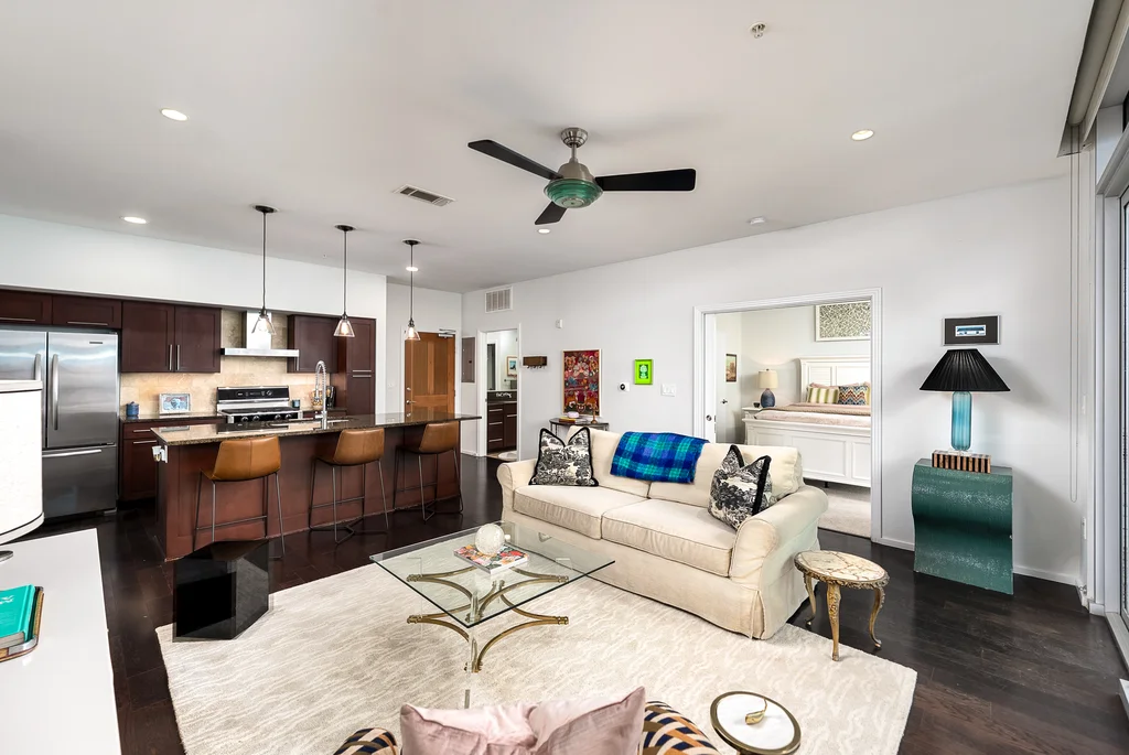 Unit 5108 is positioned in one of Austin’s most sought-after locations and the best value opportunity in BartonPlace, this condo offers a rare balance: close to downtown energy, yet surrounded by tree-lined views and a quiet, insulated building design. First-floor placement allows easy access without sacrificing privacy, especially convenient for pet owners. Floor-to-ceiling windows frame a private west-facing outlook, creating a peaceful retreat while still keeping you connected to the city. Step onto the balcony and you’re greeted by greenery—just blocks from Zilker Park, Lady Bird Lake, Barton Springs, and the hike-and-bike trail, yet tucked away and relaxed. Start mornings on the trail or at a nearby café, and spend evenings walking to some of Austin’s best restaurants before returning to a space that feels calm and removed. The building offers a heated saltwater pool, fitness center, dog run, rooftop terraces, grilling areas, owner’s lounge, a reservable guest suite, and community garden, along with 24-hour concierge and a secure gated garage. A reserved parking space near the elevator adds everyday convenience. Interior features include in-unit laundry, walk-in closet, upgraded shades, new dishwasher (2025), and new air handler (2026). The private balcony also includes dedicated storage. HOA dues simplify ownership by covering electric, water, gas, insurance, concierge, and amenities. A low 1.89 tax rate further enhances overall value.