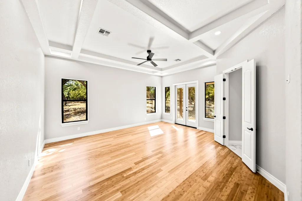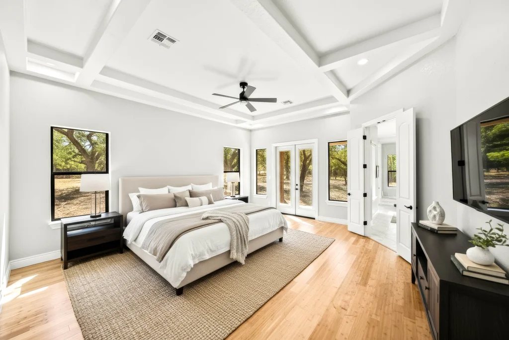 For those who seek an exception life here in the Texas Hill Country, this stunning, newly built 4 Bedroom/3.5 Bath/ 3 Car Garage Custom Home in Vintage oaks awaits you. Nestled back on desirable cul-de-sac offering breathtaking views of the hill country from your front porch and the serene escape of nature among the mature oaks in your backyard. Thoughtfully designed for Easy Luxe Texas Hill Country Living. A true masterpiece. As you step through the inviting front doors, you will be capitavated by the soaring ceilings, open concept living area and wall of windows to backyard that instantly elevate the ambience, bringing the beauty of the outdoors in. The well appointed kitchen is a chef's delight boasting custom cabinetry, endless counters and an inviting island for gathering and showcasing culinary delights, which seamlessly connects to your living and dining area. Immerse yourself in the owner's suite which is a haven for luxury. A guest ensuite with full bath and french doors opening to private patio retreat. And two spacious bedrooms share a luxe jack-n-jill bathroom ensemble. The oversized 3 car garage and additional pad parking, along with your Texas sized patio, featuring the perfect Stone fireplace to cozy up to in our fall evenings complete this home. And enjoy all the award winning resort style amenities of Vineyard Community clubhouse with lazy river, 3 pools, a park, state-of-art-fitness center, and miles of nature walking, hiking, and biking trails, along with Vintage Oaks music and craft events that encompass the Vintage Oaks Lifestyle while being minutes from HEB, medical, shopping, schools, lakes, Historic Gruene, the rivers and easy commute to San Antonio, Austin, New Braunfels, and the Interntationl Airport and all the wonderful upcoming fall & holiday festivities at Vintage Oaks and throughout the Texas Hill Country and San Antonio.