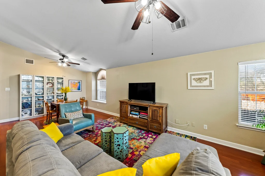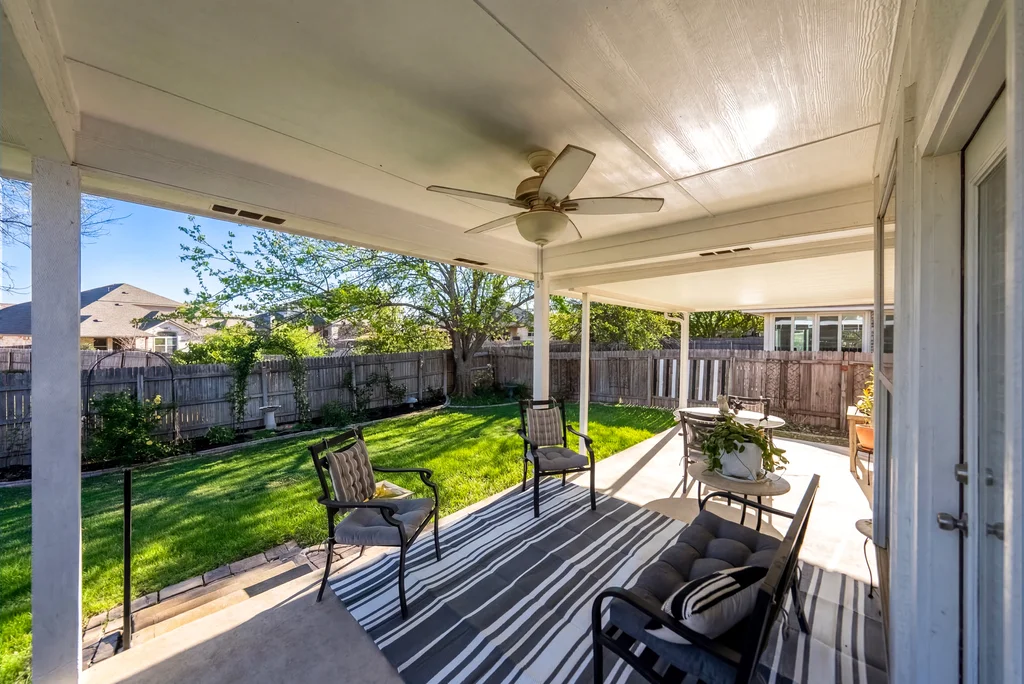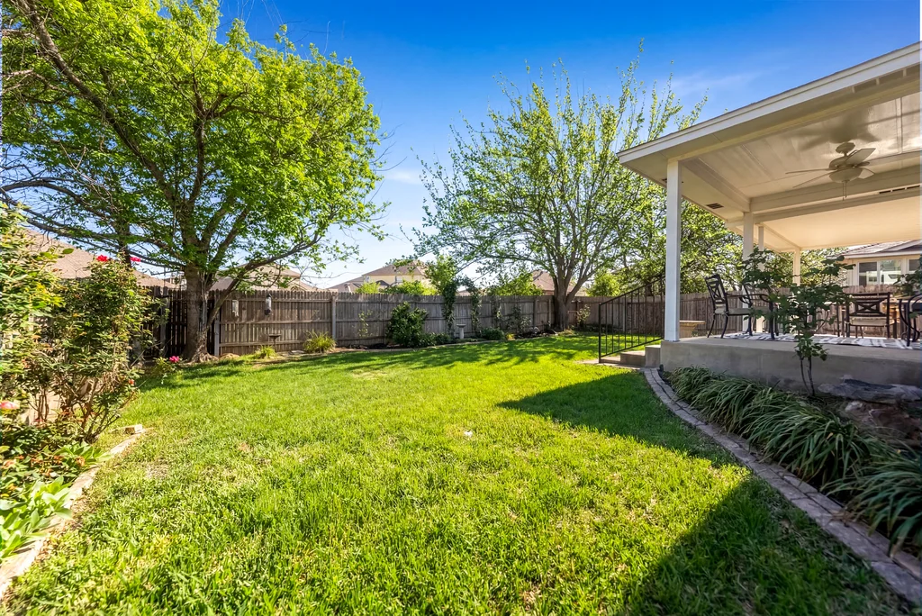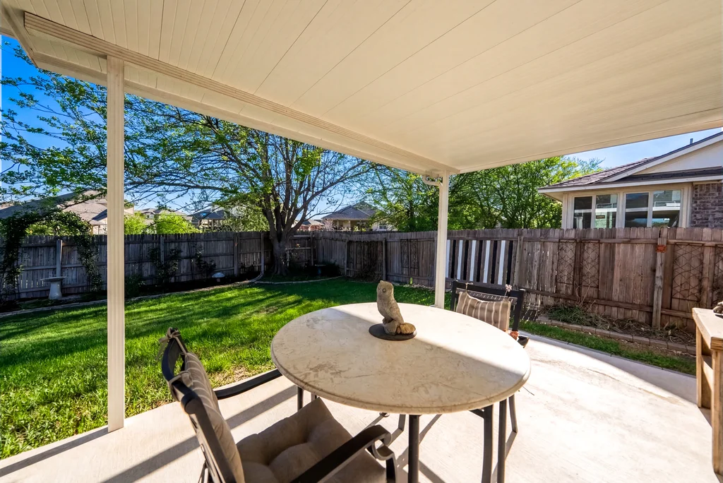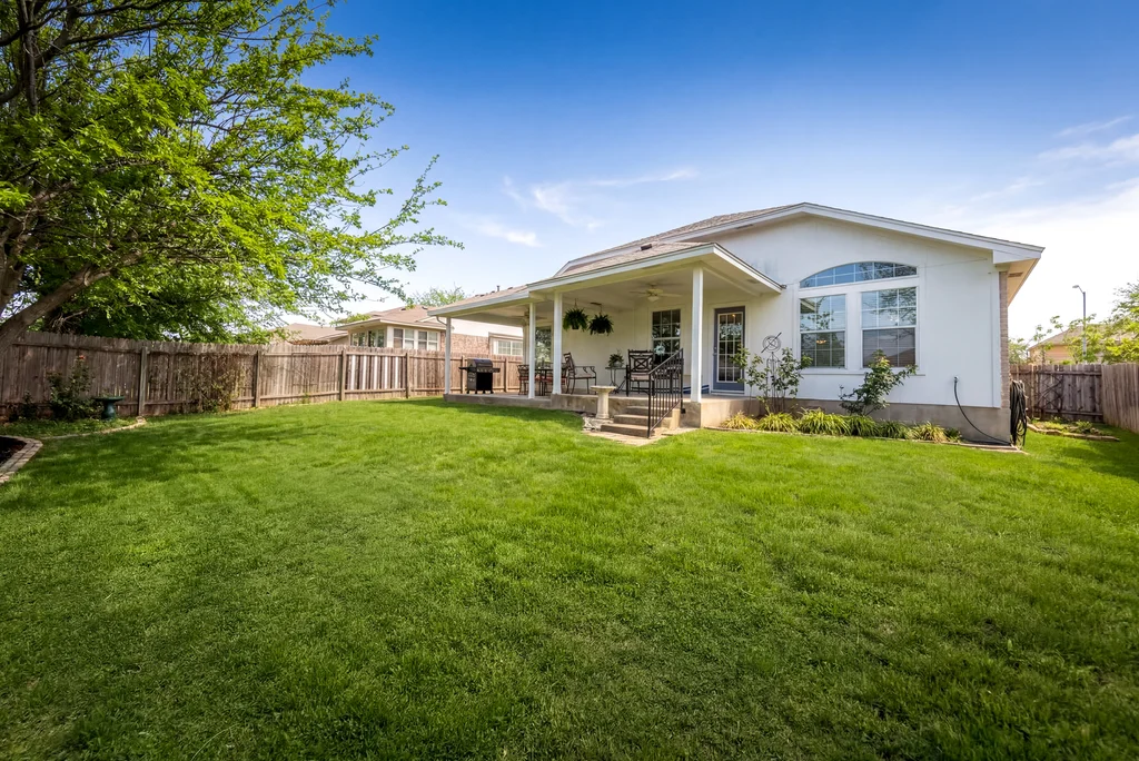 This Meadows at Cambridge Heights single-family home offers a three-bedroom, two-bathroom layout on a single story, providing a practical setup for anyone looking to live near the major tech hubs of Round Rock. Located in the 78664 zip code, this property sits in a quiet section of the Meadows at Cambridge Heights, where mature trees and established streets define the neighborhood character. Beyond its curb appeal, the home boasts significant mechanical updates for peace of mind, including a new HVAC system installed in 2021 and a new roof replaced in 2022. The floor plan places the primary living spaces at the center of the home while keeping the sleeping quarters separate for added privacy. Upon entering the home, a spacious home office sits to the right, offering plenty of room for a multi-desk setup. To the left, two secondary bedrooms share a full bathroom, keeping the guest wing distinct from the rest of the house. Moving further into the home, the floor plan opens into a combined kitchen, living, and dining area. The kitchen is a standout feature, highlighted by natural light from overhead skylights that brighten the room. This central hub is built for conversation, allowing someone in the kitchen to stay connected with the living room. The primary bedroom is positioned at the back of the house for maximum privacy. It includes an ensuite bathroom equipped with a soaking tub and a walk-in shower. Outback is a large covered patio with a ceiling fan, looking out over a yard with a thick canopy of trees that provides significant shade during Texas summers. Living in the Meadows at Cambridge Heights puts you in a prime Round Rock location for commuting. You are minutes from the 45 and 130 toll roads, making the trip to major employers easy. The neighborhood is approximately 30 minutes from both Downtown Austin and ABIA, offering quick access to the city’s dining corridors and entertainment districts.