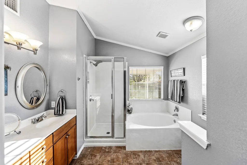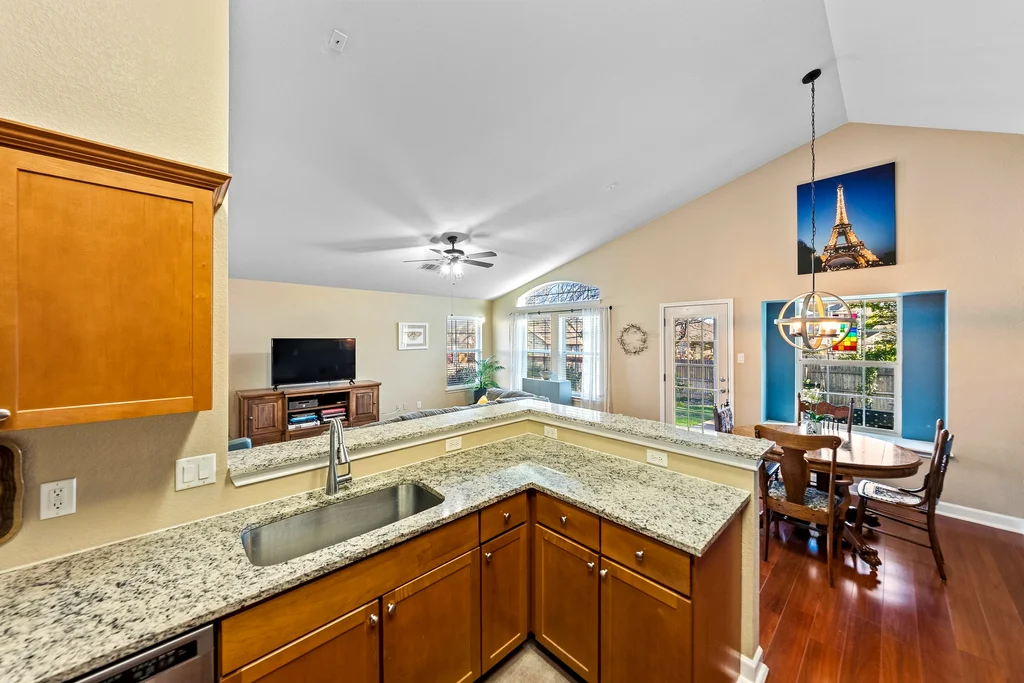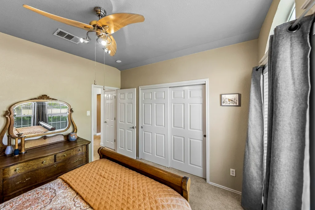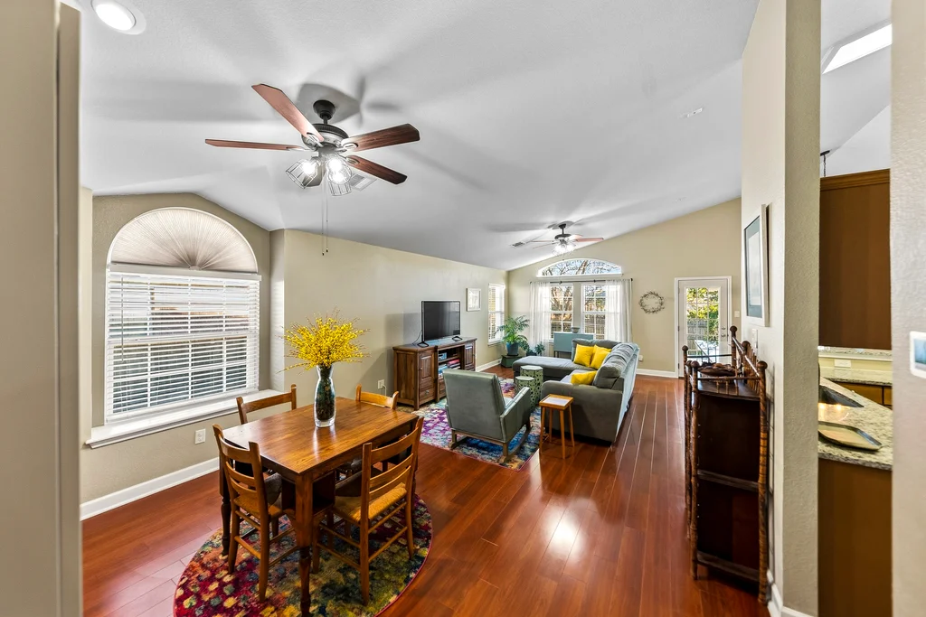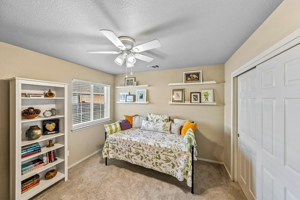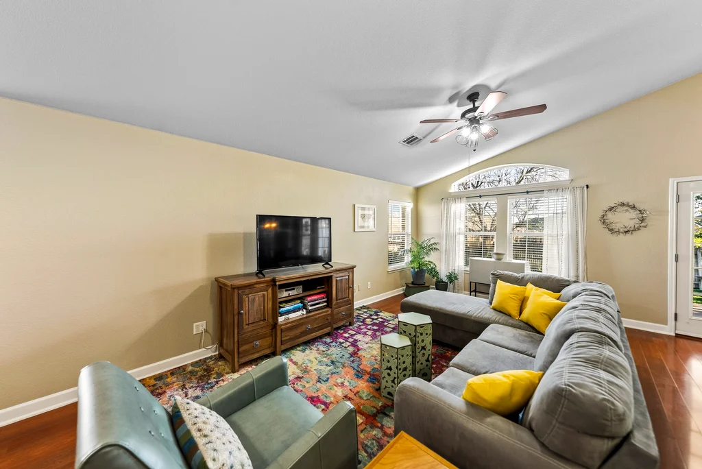 This Meadows at Cambridge Heights single-family home offers a three-bedroom, two-bathroom layout on a single story, providing a practical setup for anyone looking to live near the major tech hubs of Round Rock. Located in the 78664 zip code, this property sits in a quiet section of the Meadows at Cambridge Heights, where mature trees and established streets define the neighborhood character. Beyond its curb appeal, the home boasts significant mechanical updates for peace of mind, including a new HVAC system installed in 2021 and a new roof replaced in 2022. The floor plan places the primary living spaces at the center of the home while keeping the sleeping quarters separate for added privacy. Upon entering the home, a spacious home office sits to the right, offering plenty of room for a multi-desk setup. To the left, two secondary bedrooms share a full bathroom, keeping the guest wing distinct from the rest of the house. Moving further into the home, the floor plan opens into a combined kitchen, living, and dining area. The kitchen is a standout feature, highlighted by natural light from overhead skylights that brighten the room. This central hub is built for conversation, allowing someone in the kitchen to stay connected with the living room. The primary bedroom is positioned at the back of the house for maximum privacy. It includes an ensuite bathroom equipped with a soaking tub and a walk-in shower. Outback is a large covered patio with a ceiling fan, looking out over a yard with a thick canopy of trees that provides significant shade during Texas summers. Living in the Meadows at Cambridge Heights puts you in a prime Round Rock location for commuting. You are minutes from the 45 and 130 toll roads, making the trip to major employers easy. The neighborhood is approximately 30 minutes from both Downtown Austin and ABIA, offering quick access to the city’s dining corridors and entertainment districts.