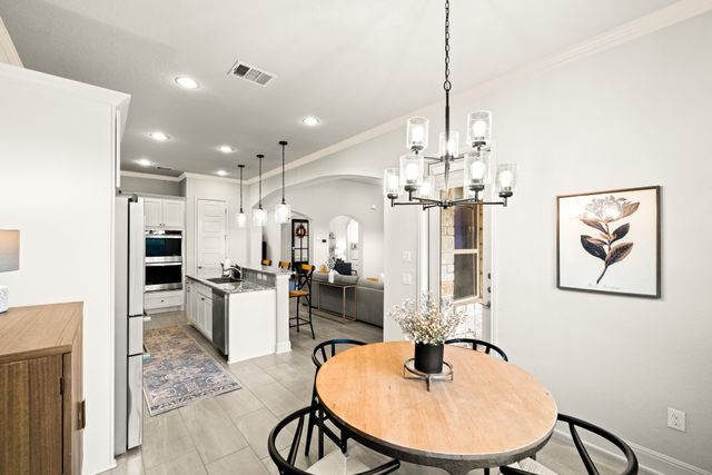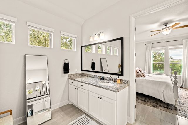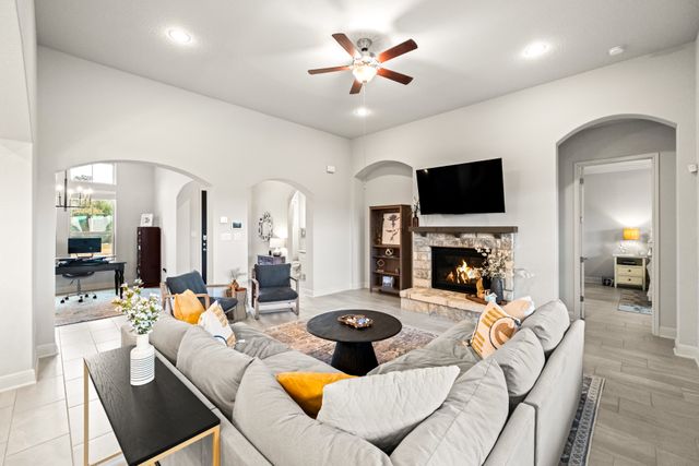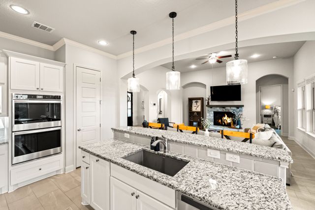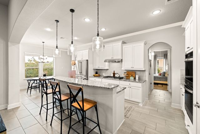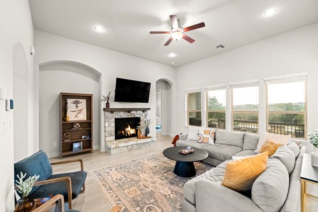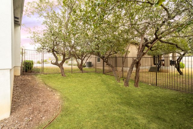 Discover the perfect blend of luxury and convenience in this stunning 3 bedroom, 3 bathroom home, nestled in the exclusive gated community of Amorosa in Cibolo Canyons with no back neighbors. This beautifully designed home offers spacious living areas, high-end finishes, and an effortless lifestyle where all lawn care is meticulously handled by the HOA, so you can focus on enjoying your home to the fullest. The open-concept floor plan invites natural light to flood the living spaces, highlighting the exquisite details throughout. A chef-inspired kitchen with top-tier appliances, sleek countertops, and ample storage space with two pantries seamlessly flows into the dining and living areas, making it ideal for both everyday living and entertaining. The separate formal dining room can easily be converted into an office or flex space. The generously sized primary suite is a peaceful retreat, offering a walk-in closet and a luxurious en-suite bathroom with dual vanities, a soaking tub, and a separate shower. Two additional well-appointed bedrooms with closets, provide comfort and privacy, with a shared full bathroom to accommodate family or guests. This well maintained home offers energy efficiency and comfort with the added benefit of spray foam insulation, ensuring lower utility costs and year-round temperature stability. Step outside to enjoy your own slice of paradise, where you can unwind while soaking in the panoramic sunsets from your private backyard. Whether you're hosting or enjoying quiet evenings, this home offers the perfect setting for both relaxation and entertainment. You will enjoy access to the gated community's exclusive features, including multiple swimming pools, a lazy river, clubhouse, BBQ grills, gyms, walking trails, and a short walk to the JW Marriott. This is a rare opportunity to own a home that combines luxury, convenience, and a low-maintenance lifestyle. This home is eligible for a reduced interest rate! Ask for details today to learn how to lock in your rate and savings!