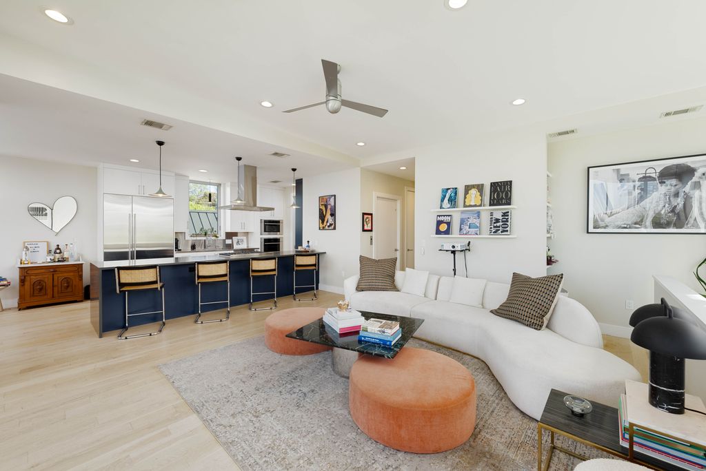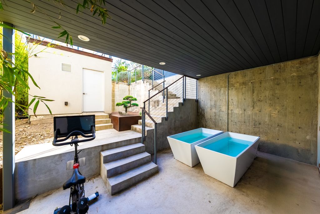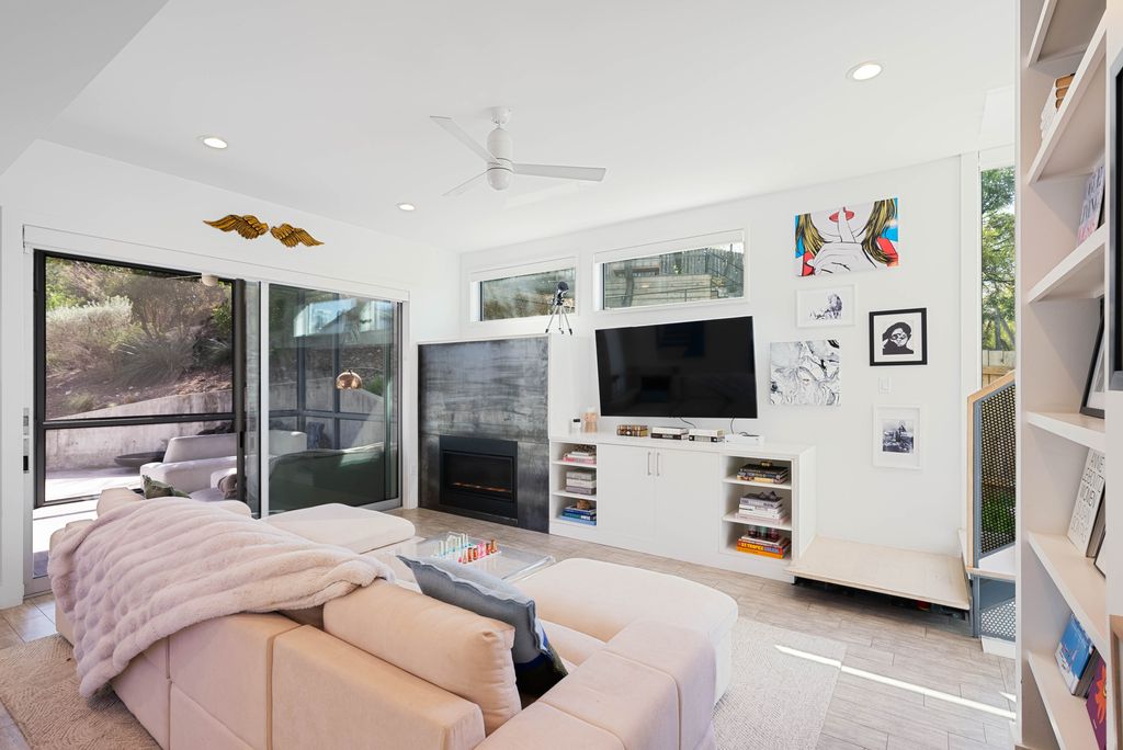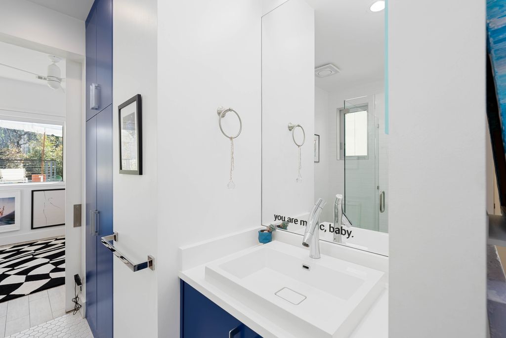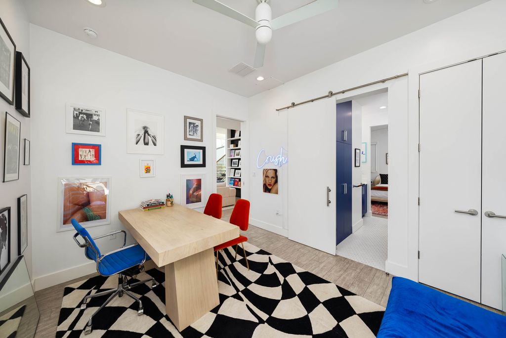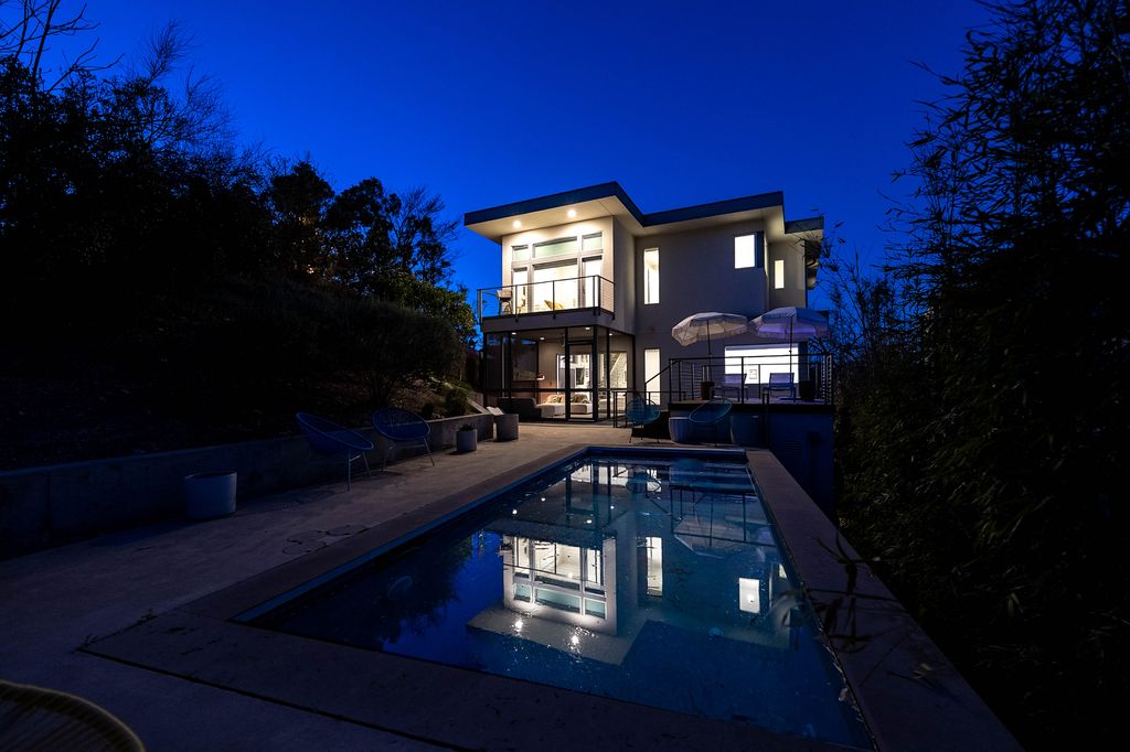 Beyond aesthetics, the home is built for performance and sustainability. A 2,500-gallon reverse osmosis rainwater system offsets up to 50% of water usage, and solar panels generate an average of 2,000 kWh/month, covering up to 80% of the home’s energy needs. Additional features include a hardwired security system, smart home tech, protected, separately housed pool equipment, and a built-in projector screen that transforms the skyline into your personal theater. Generous storage is integrated throughout, and the 420-square-foot garage can be converted from a one- to two-car layout, if desired.
